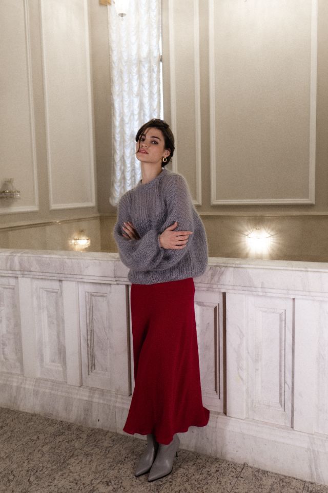 Роскошная юбка в цвете молодого вина Божоле, красиво драпируется, что создает красивые линии и подчеркивает фигуру